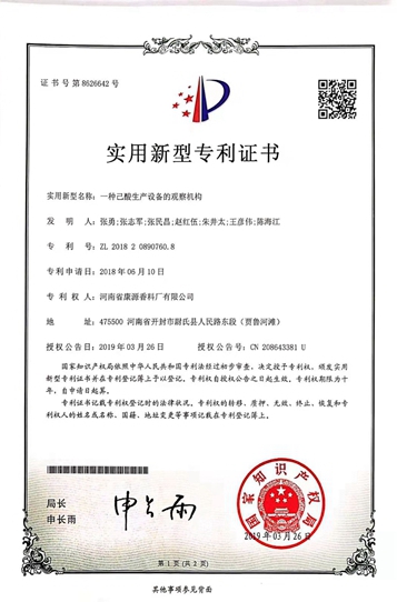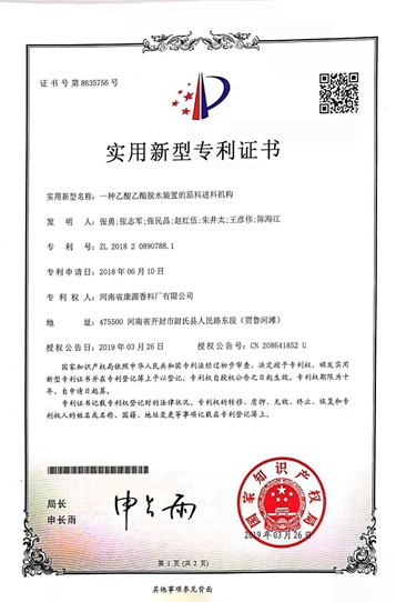 河南省康源香料廠有限公司坐落于尉氏人民路東段(賈魯河灘),是生產(chǎn)經(jīng)營食用香精香料、食品添加劑、精細(xì)化工產(chǎn)品生產(chǎn)銷售的企業(yè),統(tǒng)一社會信用代碼:91410223799151685B,公司成立于1997年,注冊資金850萬元,廠區(qū)占地面積14300平方米,廠房建筑面積13600平方米,現(xiàn)有企業(yè)員工186人,其中擁有高、中級職稱技術(shù)人員48人,主要生產(chǎn)銷售產(chǎn)品有:食品添加劑(己酸乙酯、乳酸乙酯、丙酸乙酯、異丁酸乙酯、丁酸乙酯、 乙酸乙酯、庚酸乙酯乙酸異戊酯、辛酸乙酯、乙酸丙酯、苯乙醇、2,3丁二酮、冰乙酸(低壓羰基化法)、乳酸、己酸、丁酸、丙酸、乙縮醛、甘油、己酸烯丙酯、庚酸烯丙酯),食品用香精(食品用香精-液體),復(fù)配食品添加劑(復(fù)配酒類增味劑)實際綜合生產(chǎn)能力達(dá)到3萬噸/年,固定資產(chǎn)2810萬元,總資產(chǎn)13200萬元。